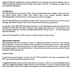“Also, after two years of trial use, the NO-LET rule on service was voted in as a permanent rule. Prior to the vote, all members were polled, and the results of the APTA survey were discussed. The Board did not act on a suggestion to address the “dribbler” factor, a major complaint against the no-let rule where a loss of point is due to a “dribbler”.