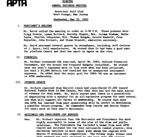 APTA Annual Meeting Minutes – financial situation demands increased membership APTA 1983 Annual Meeting Minutes The APTA faced a loss of $5,000 due to unexpected tournament expenses and a major effort in the upcoming year would be on increasing membership