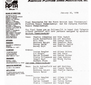 An invitation International Tournament under the joint auspices of the International Platform Tennis Association and the BPTA, to be held at Silvermere Country Club, Redhill Road, Cobham, Surrey. Sponsored by Racquet Sports International Limited. Teams from the United States, Holland and the United Kingdom.
