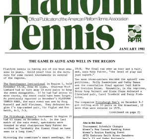 The lead article in the January edition of Platform Tennis was on the large turnouts for regional tournaments.