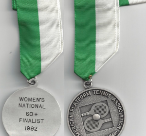 The APTA had started the National Championships medal program in 1991. The 1992 medals included those for the winners and finalists of the Women’s Senior 60+ Championship, an event that was inaugurated in 1999!