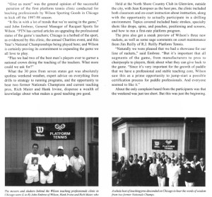 “It fits in with a lot of trends that we’re seeing in the game,” said John Embree, General Manager of Racquet Sports for Wilson, because “…..Chicago is a hotbed of the sport, as evidenced by this clinic, the annual Charities event, and this season’s National Championships being played here.”