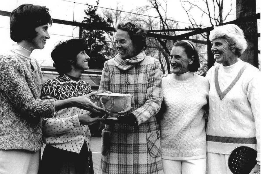 Back to TopEthel Kennedy (center) presents the trophy at the 1971 Women's Nationals in Chevy Chase, Maryland, to (from left) B. J. Debree, Gloria Dillenbeck, Peggy Stanton, and Charlotte Lee.