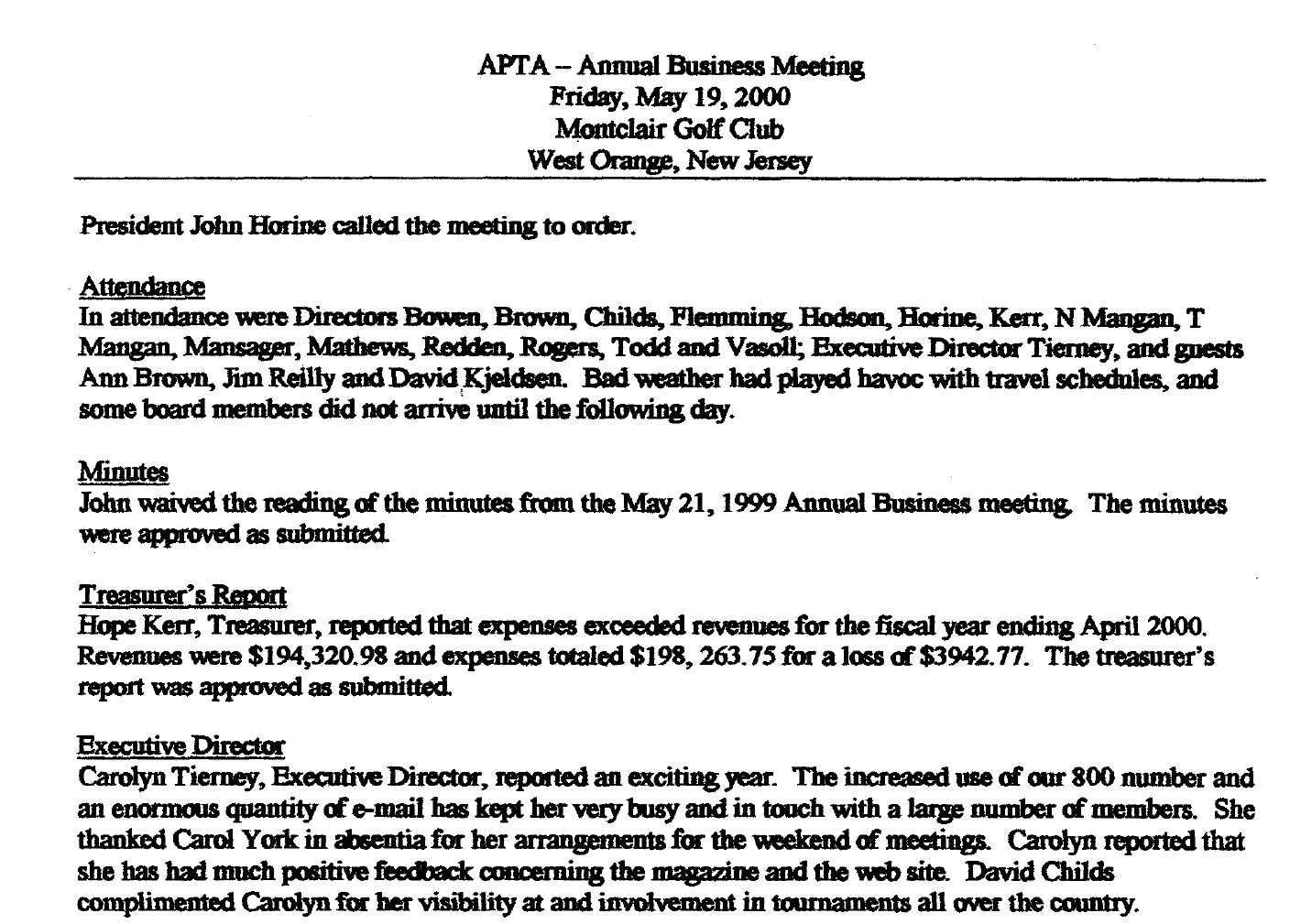JHH: I had been on the Board for two years as president of Region III when then APTA President Charley Stevens asked me if I would like to be vice-president along with Nancy Mangan. I had brought up several new ideas before the Board during that time, including the APTA Visa card, the Board teleconference, and the website. I had also been working closely with Charley trying to secure national sponsors for the APTA.