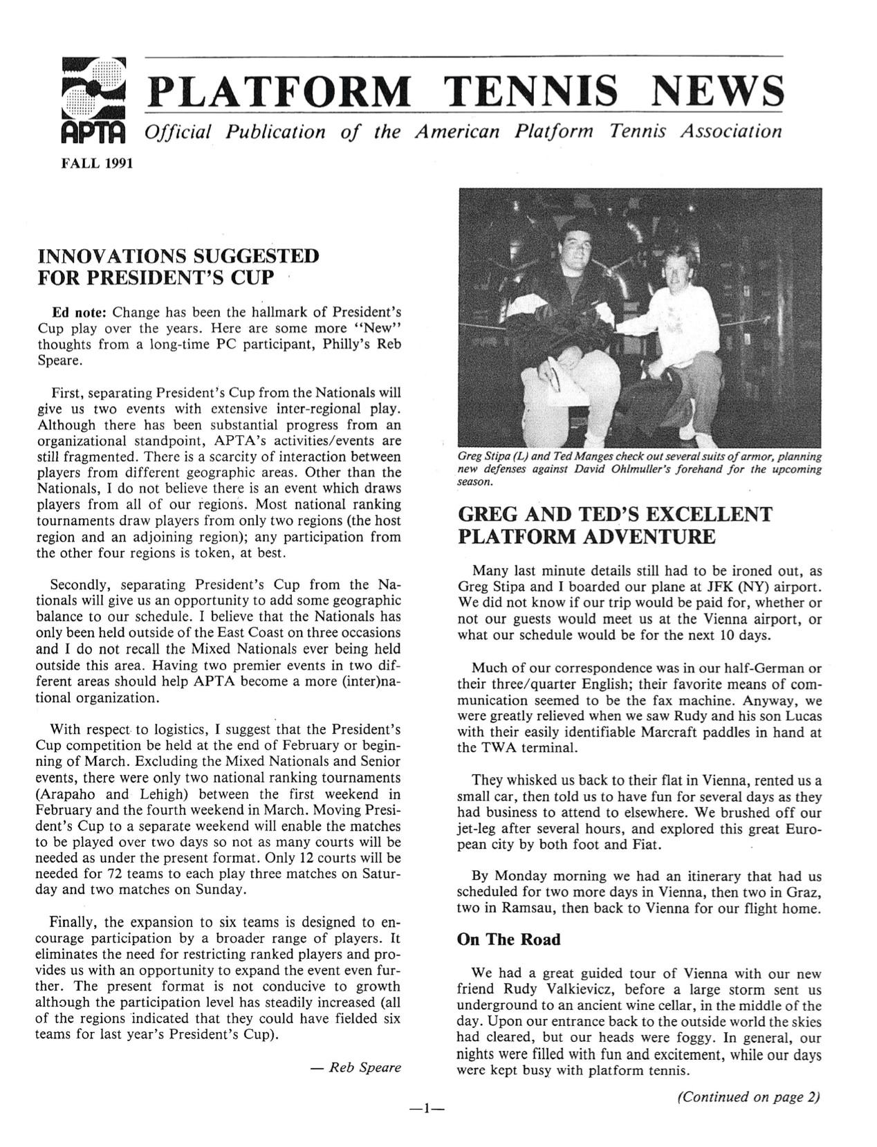 Source: Platform Tennis News, Fall 1991