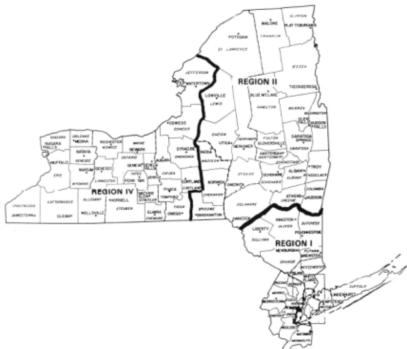 It had been unclear for several years where the lines were drawn in upstate New York between the current Region IV that encompassed the Rochester area, and Region I, which appeared to end someplace north of New York City.