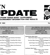 Read More“Four stars” and “two thumbs up” were the universal reaction to the celebrated Rye Invitational, hosted by Westchester Country Club in Harrison, NY. A slew of platform stars came out to strut their stuff, highlighted by the 1992 men's Nationals champs, Rich Maier and Bob Kleinert, making their seasonal debut. And what a debut, as they roared through the tourney with the loss of only one set, and finished off by topping the number one seeds, Peter Gruenberg and Art Williams, in straight sets. The high-flying women's duo of Robin Fulton and Diane Tucker cemented their role as the leading ladies by also only losing a single set all weekend, and knocking off Patti Hogan and Kate Rogers in a straight -set final. While not quite a cast of thousands, there were more than 240 other players who assumed roles from struggling first-rounders to almost up-setters, as not only the [...]