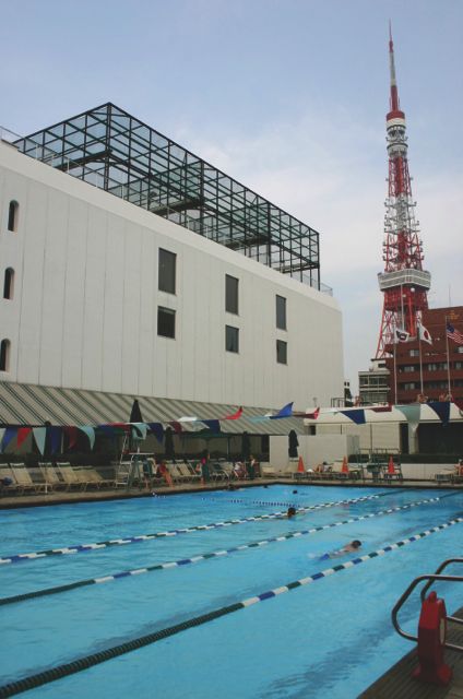 Back to TopCourts on the roof of the Tokyo American Club. The Tokyo Tower, the tallest free-standing steel structure in the world, is at the right. The photograph was taken in the 2000s