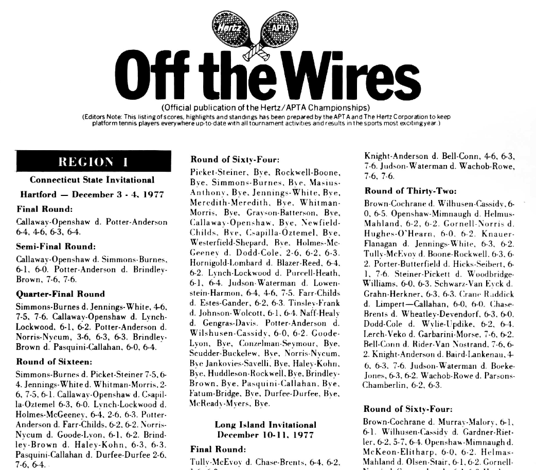 Calvert Distillers Company, the producer of Passport Scotch, agreed to sponsor the Passport Platform Tennis Playoffs, which consisted of six men’s events and five women’s events, all leading up to the $50,000 Passport Platform Tennis Classic in March 1978 at the Orange Lawn Tennis Club, South Orange, NJ.