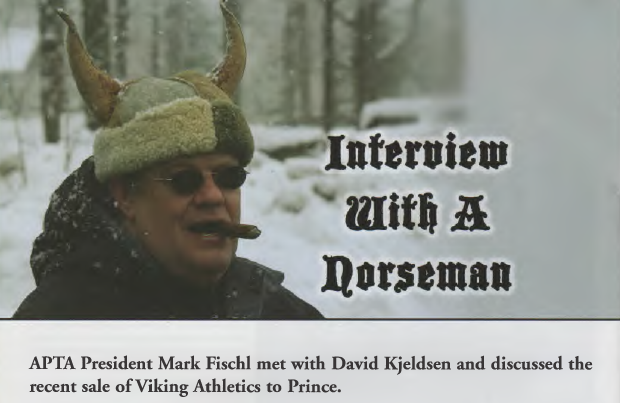 APTA President Mark Fischl met with 2008 Hall of Fame inductee, David Kjeldsen, and discussed the recent sale of Viking Athletics to Prince.