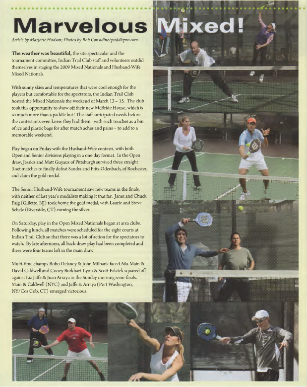 The weather was beautiful, the site spectacular and the tournament committee, Indian Trail Club staff and volunteers outdid themselves in staging the 2009 Mixed Nationals and Husband-Wife Mixed Nationals.