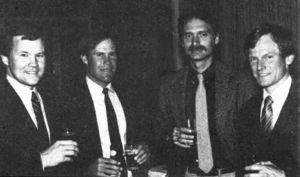 Back to TopThe first annual Men's 70+ National Championship was played on March 28, 1982, in Franklin Lakes, New Jersey. Pictured (left to right) are the participants who came from Connecticut, Maryland, Ohio, Washington, D.C. and New York: runners-up George Holloway and Walter Frese, winners Harry Gilbert and Bill "Smoky" Miller, John Morse, Fred Lammis, Ed Fogel, Robert Thoman, Stuart Glover, and Larry Levy.