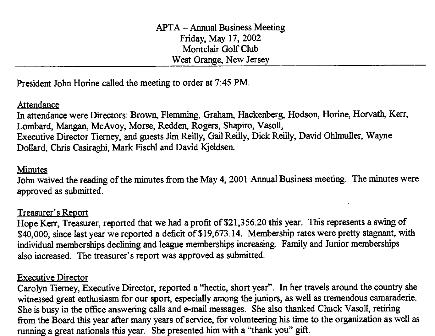 The Long Island Platform Tennis Association, Chaired by Charles Vasoll, hosted the 2002 Men's and Women's Open National Championships from March 8-10. The weather was a comfortable 65 degrees; however, occasional wind gusts up to 30 miles per hour were not uncommon. One thing was for sure, a wind of change was in the air.