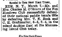 "O'Hearns Win in Paddle Tennis" NYT article of...