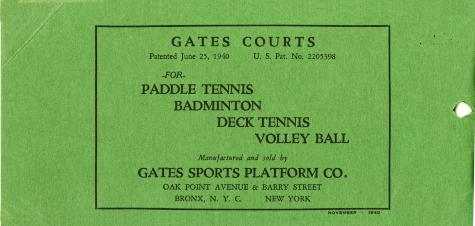 Brochure: Gates Brochure published in 1940. Gates was the first professional builder of Platform Tennis Courts.