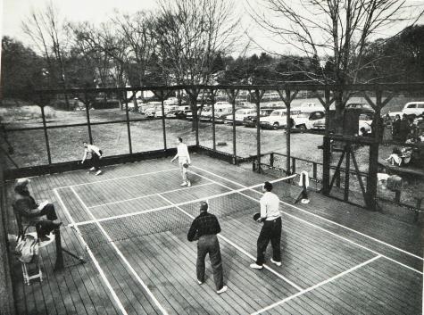 Photograph: Rawle Deland takes one off the backstop while everyone else watches and waits