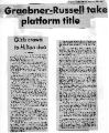 Newspaper Article: "Graebner-Russell take platform title. Girls crown to Hilton duo" - Star Ledger article on the $50,000 Passport Scotch Platform Tennis Classic at Orange Lawn. 1,650 fans attended the