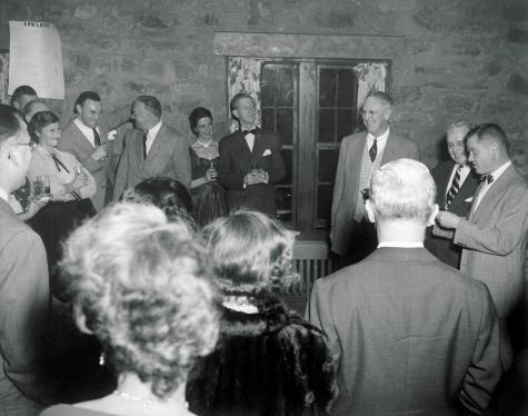 Description: Silver bowls were presented to Blanchard and Cogswell by the APTA and Fox Meadow Tennis Club. Picture taken during the reading on Jim Carlisle's "Hiawatha" poem