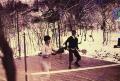 Photograph: Mary Blanchard, in stylish cloche, teams with left-handed Earle Gatchell on the original Cogswell court