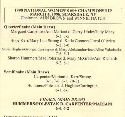 Drawsheet: 1998 Women's 60+ Senior Drawsheet