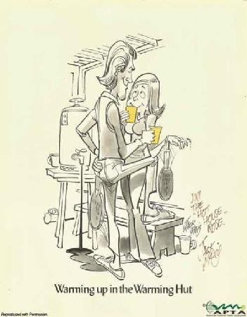 Description: One of the classic "Paddle Tennis" cartoons created by noted cartoonist Jack Davis during the 1970s. Davis was a member of Scarsdale Golf Club when these were done. He often used Fox Meadow member Karen Reuter to do any coloring required for his cartoon.,Jack Davis (1924-) is an American cartoonist and illustrator, known for his advertising art, magazine covers, film posters, record album art and numerous comic book stories. He was one of the founding cartoonists for Mad in 1952.