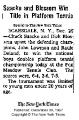 Newspaper Article: "Saake and Blossom Win Title in Platform Tennis" - NYT covers 1968 Junior Boy's at Fox Meadow