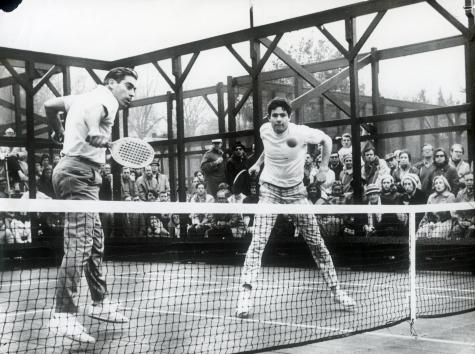 Photograph: John Mangan and Bob Kingsbury during 1971 Men's Nationals at Fox Meadow Tennis Club, Scarsdale, NY