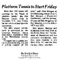 Newspaper Article: "Platform Tennis to Start Friday" - NYT previews 1974 Men's Nationals at Fox Meadow. Over 100 teams entered