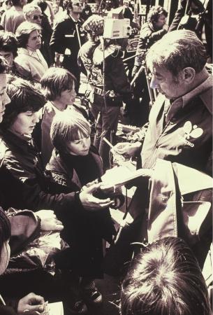 Photograph: Tribuno World Championships at Forest Hills -Howard Cosell, always a popular and colorful commentator, was the chair for the finals that was broadcast on NBC. Play was temporarily suspended during the windy final when Cosell’s toupee blew onto the court.