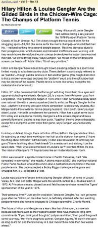 Magazine Article: People magazine article: "Hilary Hilton & Louise Gengler Are the Gilded Birds in the Chicken-Wire Cage: The Champs of Platform Tennis". They had just won the $8,000 Passport Scotch Platform Tennis Classic at South Orange