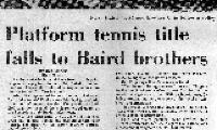 "Platform Tennis Title Falls to Baird Brothers...